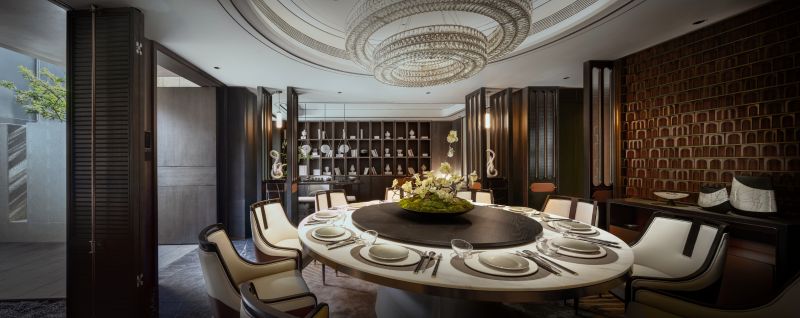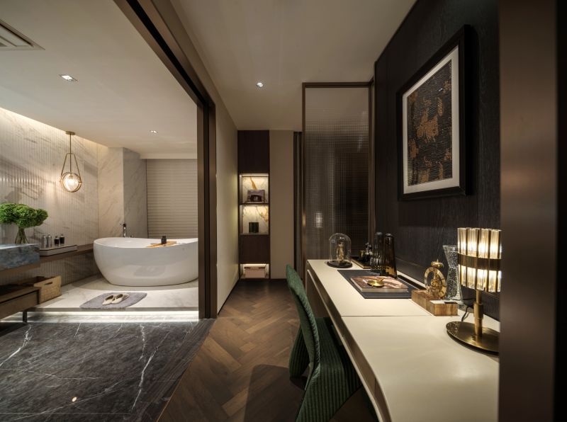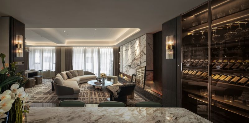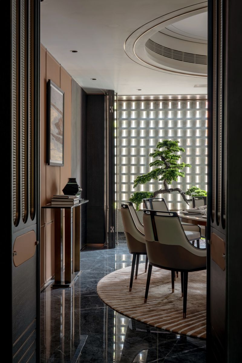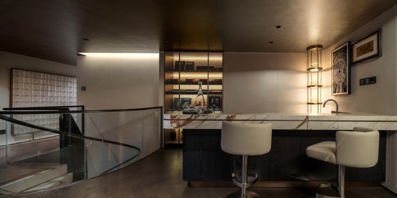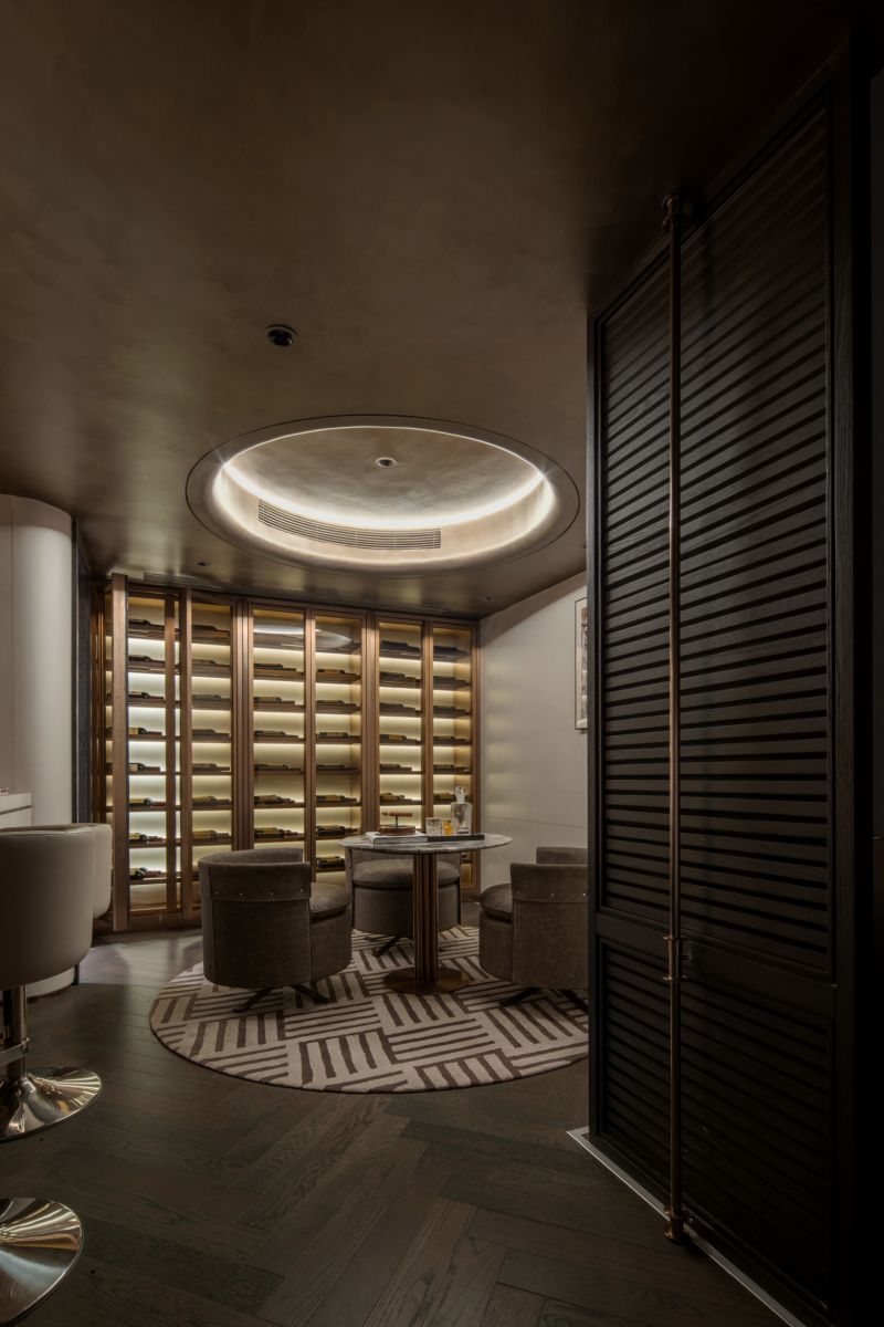 The project is nestled next to Meixi Lake, Changsha and enveloped by mountains, evoking a profound sense of tranquility. The design team has centered their vision on creating an urban elite's garden residence, characterized by an undercurrent of refined luxury that seamlessly integrates fashion and art elements to craft a contemporary and culturally enriched five-story living space.It encompasses a social and entertainment area across the lower two floors, while the upper three floors are dedicated to a living space.