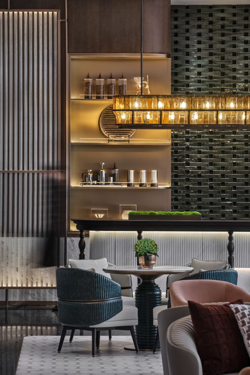 Drawing inspiration from the cultural heritage deeply rooted in southern Fujian's DNA, the designer extracts natural elements such as "forest, island, wave, and stone." They refine design symbols found in Nanyang architecture including red bricks, tiles arch coupons color glass columns among others; blending them harmoniously with sophisticated architectural style tones. This fusion gives rise to an exquisite aesthetic known as New Amoy Deco life aesthetics created by Lianfa.