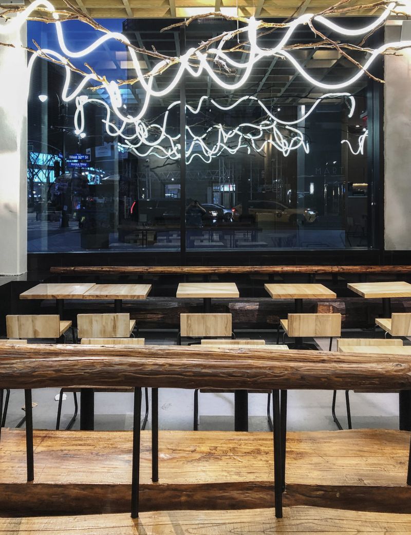 Nanaha is a company that introduces “a new form of Japan” to the world from the perspective of “matcha”.The company conveys the spirit of Japanese wabi and sabi, and the Japanese spirit of enjoying change over time, through space and food.For this project, the space was composed of only natural materials that weathered. The benches are made of “old wood and sokuseki” (old wood: reused logs from dismantled Japanese wooden buildings / sokuseki: foundations used to support old wood in traditional Japanese houses), and the timeless design creates a space that will be there even after 100 years.