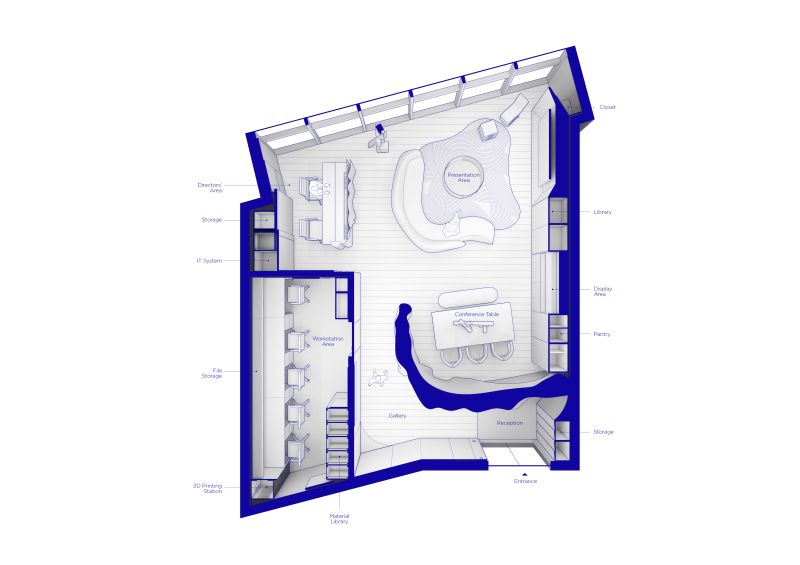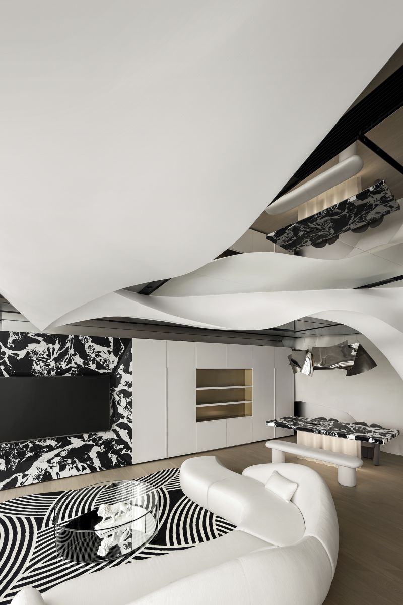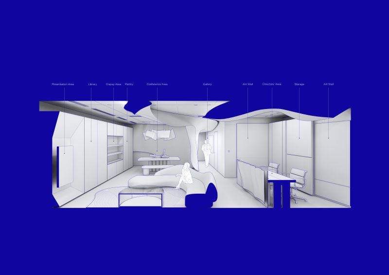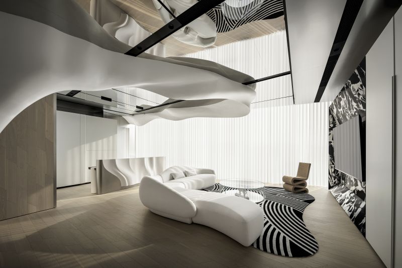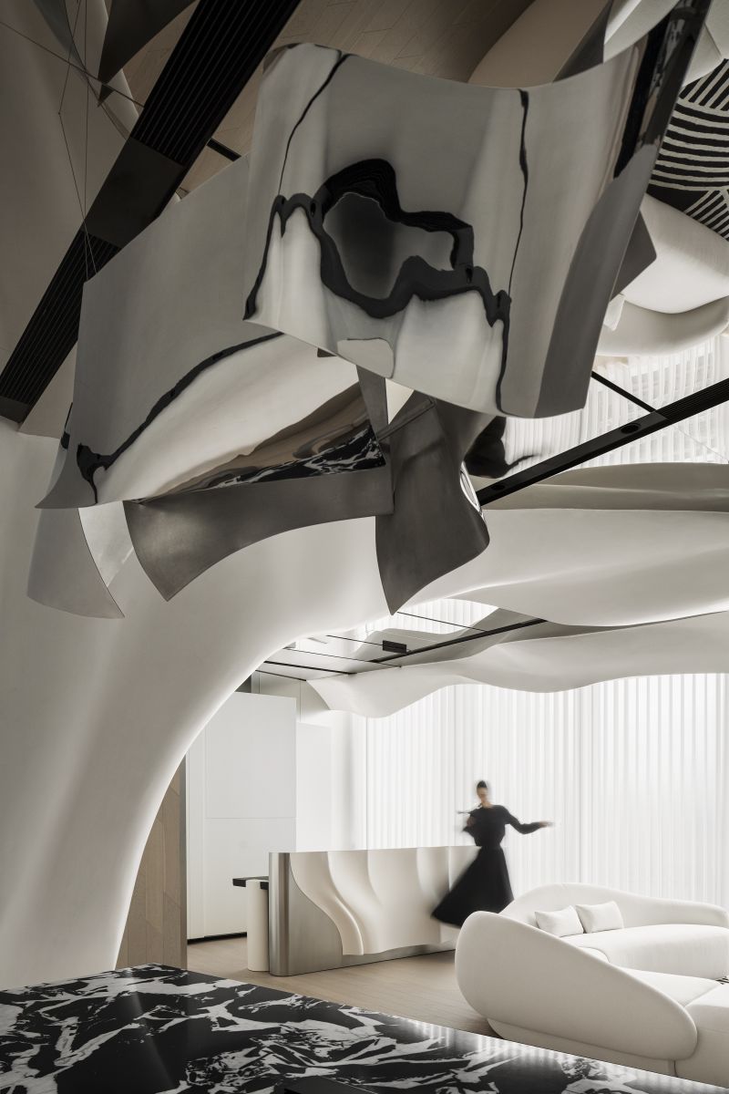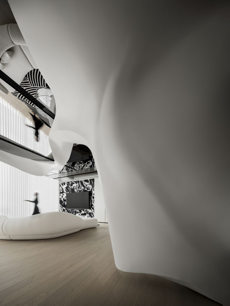Artisanal Curve is an 88 square meter mini office space located in Zhuhai, China. The design effectively organizes various functions within the limited footprint by incorporating a single, three-dimensional white stroke - the "Artisanal Curve." Inspired by wind movements and Chinese calligraphy, this dynamic sculptural element serves multiple purposes as a reception hall, enclosed gallery, conference room screen, and visual guide to the meeting rooms. By blurring the boundary between art and functionality, the Artisanal Curve brings dynamic and artistic beauty to the mundane office setting.