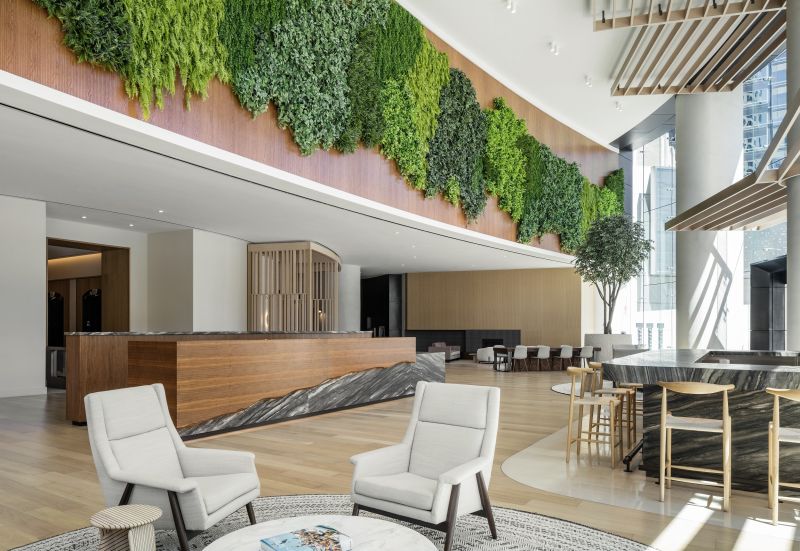 A $35 million capital improvement program to upgrade and reposition the U.S. Bank Tower in downtown Los Angeles. Upgrades of common spaces include redesigning the building’s main entrance and lobby with a new day-to-night juice and cocktail bar, a grab & go market, additional seating, and collaboration areas. Now completed, US Bank Tower sports a look and feel more in line with the world’s leading boutique hotels.