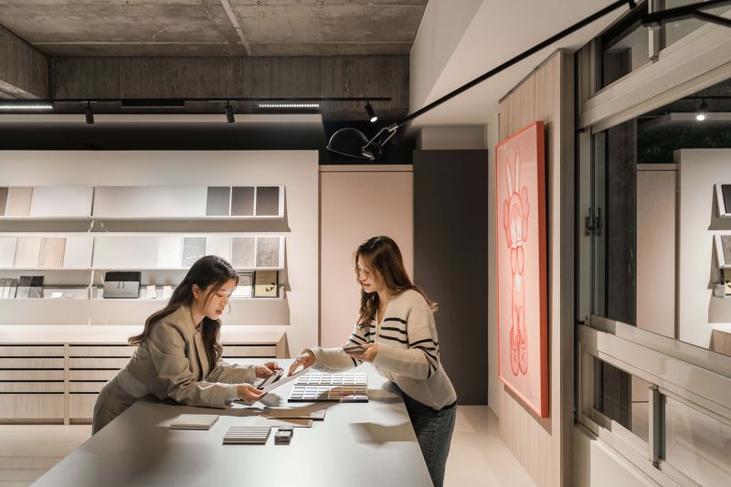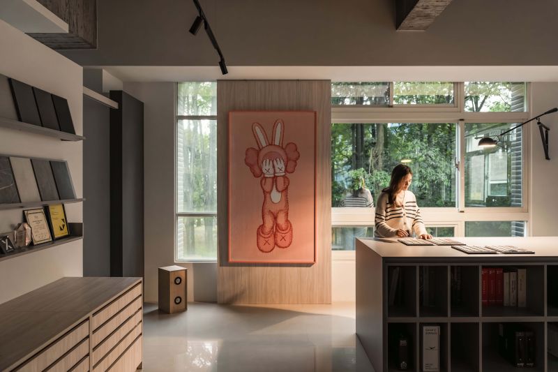 Unadorned concrete ceilings and neutral color palettes envelop the entire space, fostering a sense of harmony and unity. The delightful interplay of visual and tactile elements enveloped the visitors in a comforting ambiance reminiscent of home.