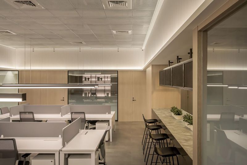 In addition, the entire project skillfully utilized formaldehyde-free paint and medium-density fiberboard ceilings, providing a non-toxic and eco-friendly working environment.The meeting rooms are equipped with adjustable PDLC films to prevent unnecessary energy consumption, reflecting a commitment to sustainable development through thoughtful design.