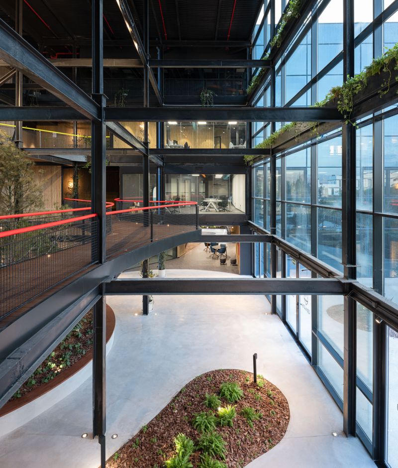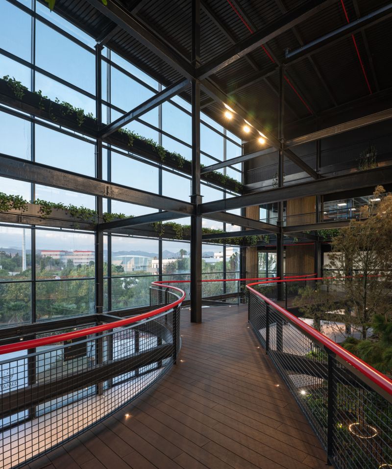 Atlantic Mediterranean Campus transforms a former office building in Málaga into a flagship university. The design strips the structure to its essence, creating open, boundary-free spaces where nature and light flow through large courtyards. Curved elements reflect student creativity, while local, sustainable materials like esparto and wood honor traditional craftsmanship. A triple-height Andalusian courtyard forms the heart of the campus, fostering interaction in this people-centered, 100% Andalusian online university.