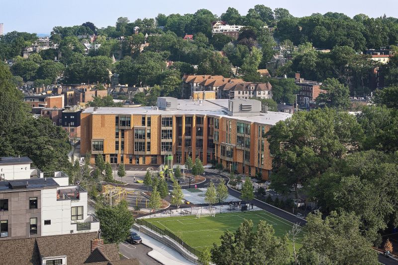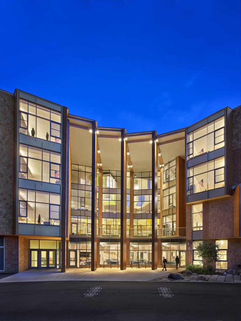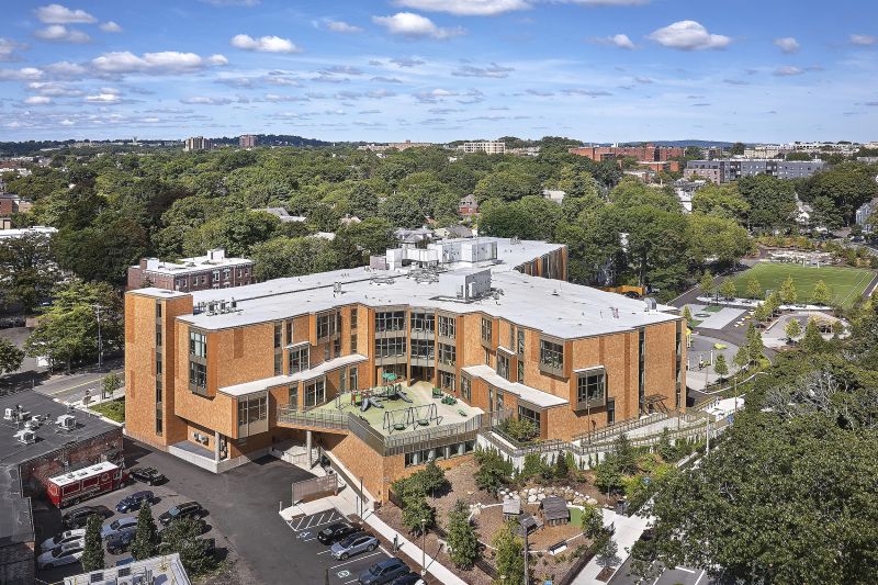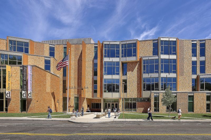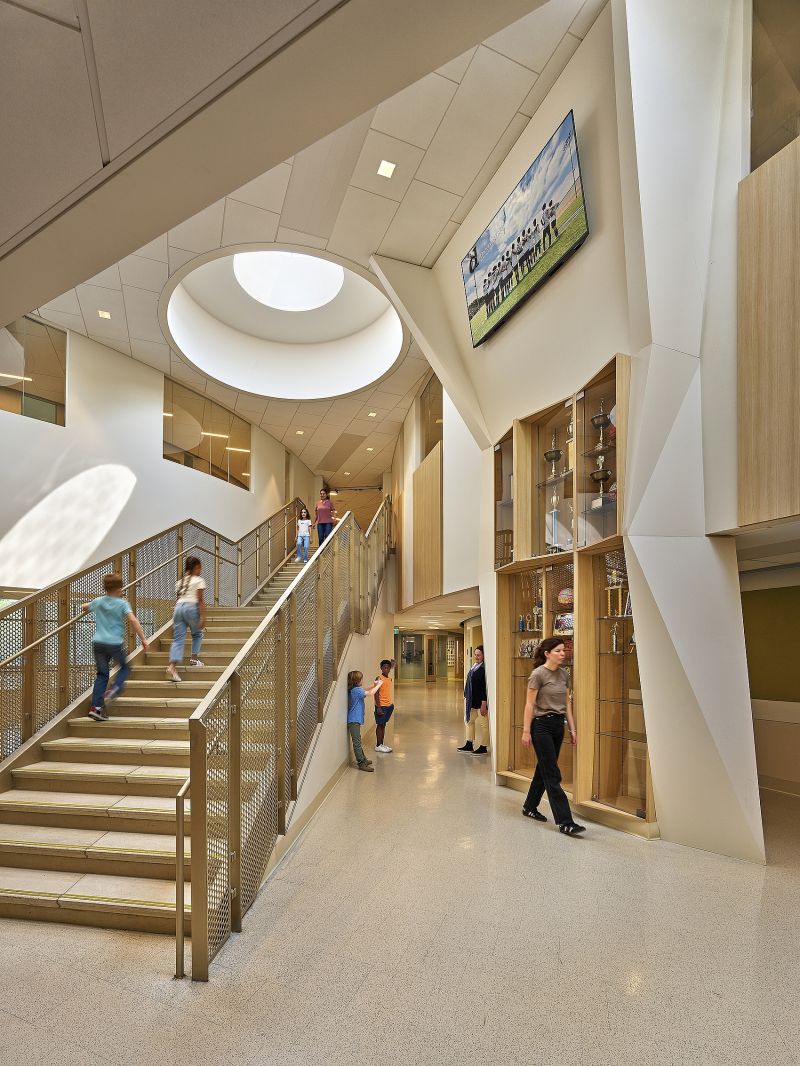 The new Pre-K – 8 Michael Driscoll School project uses a radiating floor plan to exemplify the District’s educational vision by conjoining its educational sub-community wings into a central shared visible collaboration zone of Learning Commons/Cafeteria atrium. The design accommodates 800 students and nearly 150 faculty and staff. The facility includes 36 new classrooms, including a media center, a glass-enclosed Art, Maker Space and Functional Lab, collaboration and breakout areas, art and science spaces.
