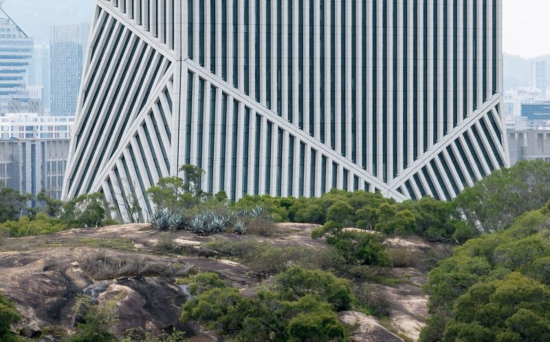 JOMOO Headquarters is the first office campus for China's largest sanitaryware company. Located in Xiamen's central business district, the building stands between dense high-rises on one side and forested hills on the other, encapsulating the coexistence of nature and urbanization that defines the island city's landscape.