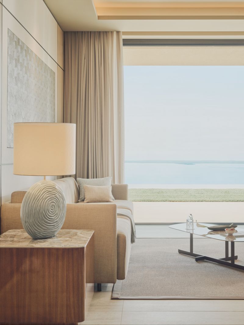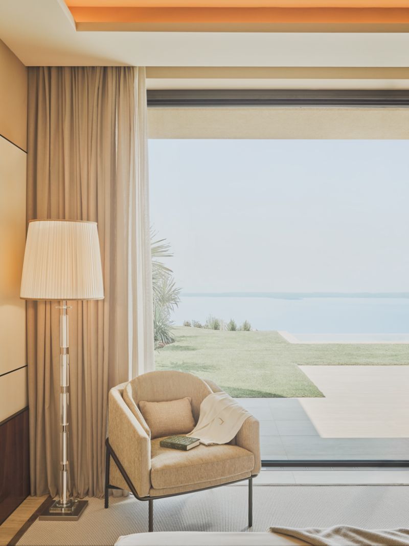 Set within an eleven-hectare park with stunning lake views, the Sky Pool Villas at Lefay Resort & SPA Lago di Garda redefine private luxury. Each single-level villa, from 300 sqm, features a garden, infinity pool, and interiors blending travertine, soft tones, and 1960s nautical elegance. Custom furnishings, aquamarine accents, and marble details evoke lake hues. Private spas, terraces, and full resort services complete a haven of refined tranquility.
