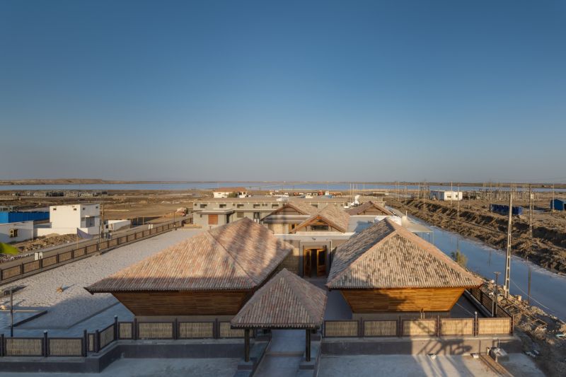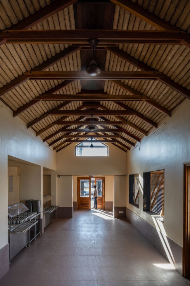 In the white expanse of the Rann of Kachchh, near Dhordo village, a resilient and sustainable canteen provides a pause for the staff and contract workers of Agrocel Industries. The canteen, located within the plant premises, addresses the extreme climatic conditions of the region while offering a comfortable and functional space. Four identical 50-seat dining bays, interconnected by a linear serving space, ensure efficient flow during peak hours, accommodating the large workforce with ease.
