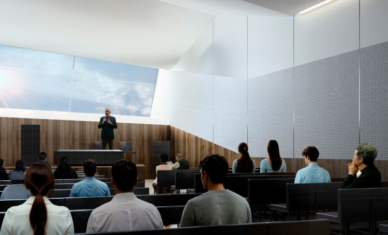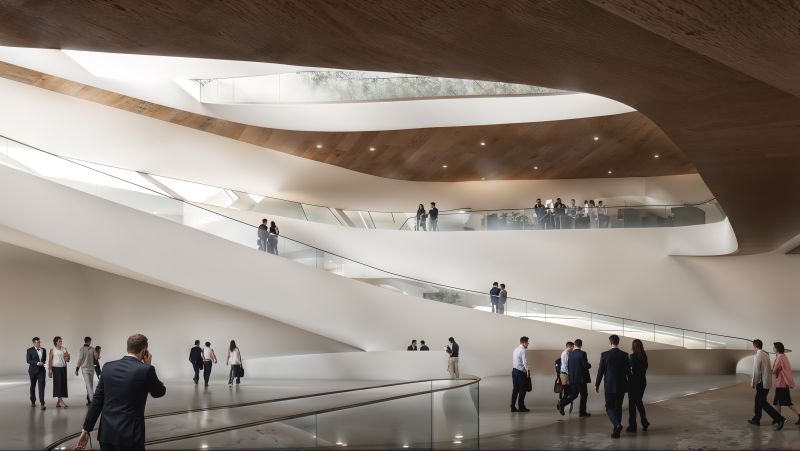 Located in Guadalajara, Memorial Andares offers a reflective space within a dynamic urban environment. Inspired by the Möbius strip, its fluid design evokes continuity between life and eternity, promoting introspection. Using white concrete, wood, and glass, it balances monumentality and warmth. Across three levels, the ground floor has a lobby and reflecting pool; the first, sanctuary and cremation area; the second, a restaurant, private suites, and business center. Memorial Andares honors loved ones while uniting spirituality, landscape, and contemporary design.