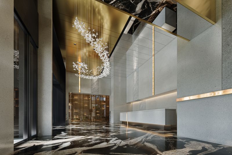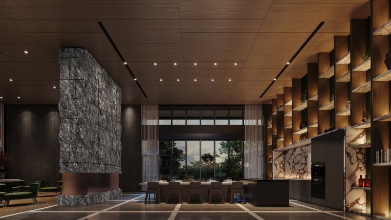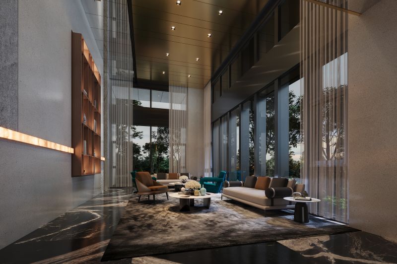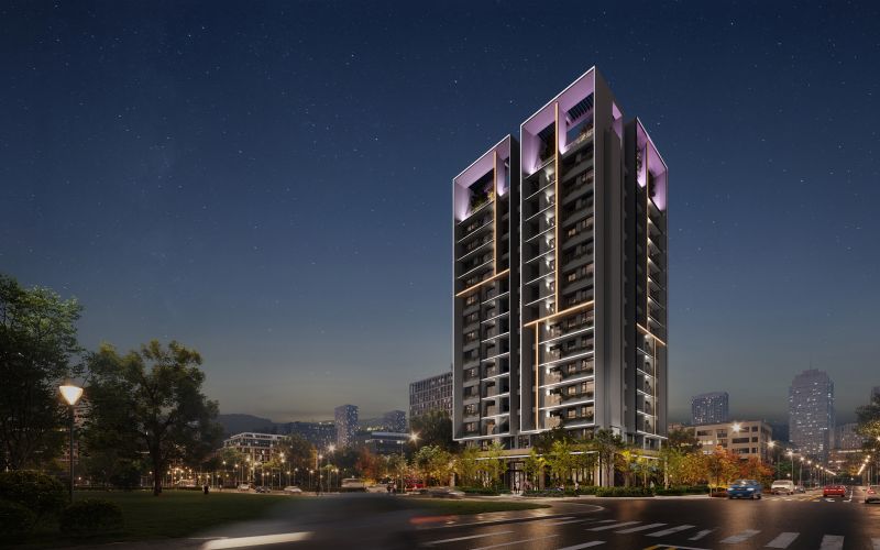 The concept, “Urban Box × Light Variation,” uses minimalist geometry, layered volumes, and rhythmic façade depths to create a structure that seems to float amid greenery. Its suspended volumetric form and varied panel depths interact with light and shadow, forming dynamic visual layers. A three-stage lighting design enriches the nighttime skyline, while the rooftop’s private garden extends nature upward. Refined shared spaces—an elegant stone lobby, fluid lounge, and vivid gym—complete the tranquil urban retreat.
