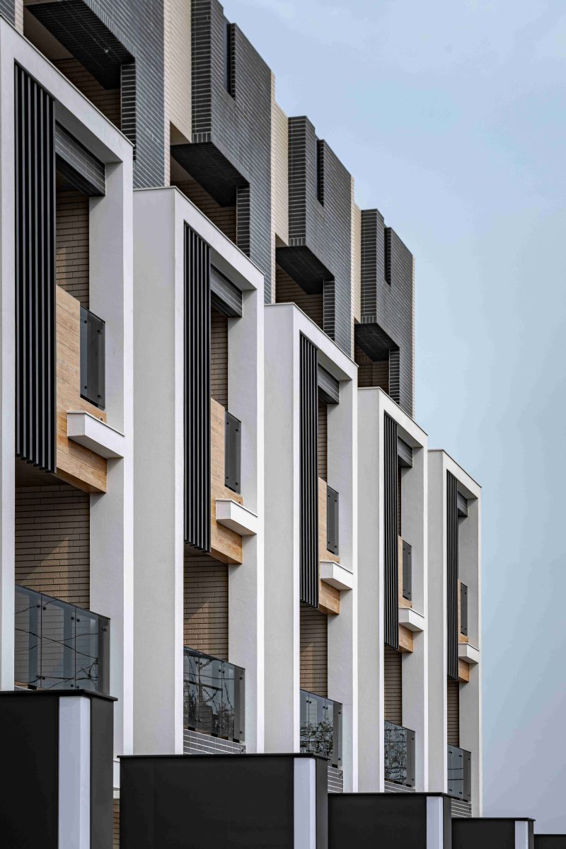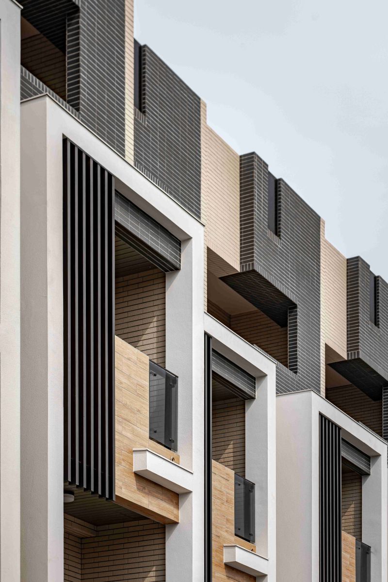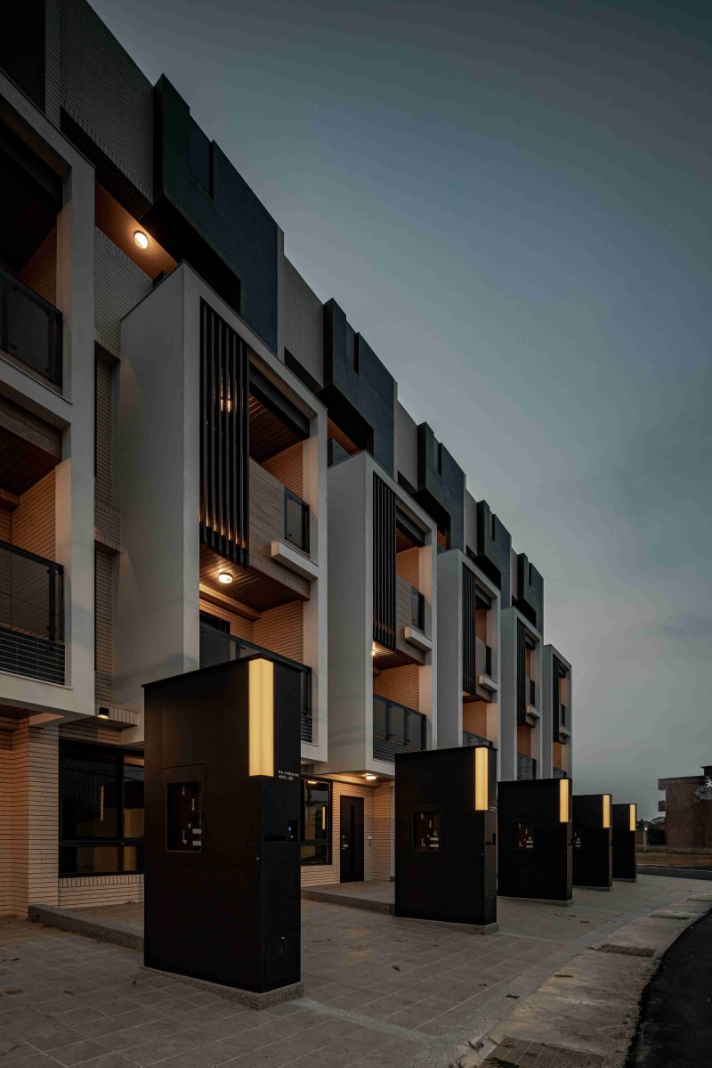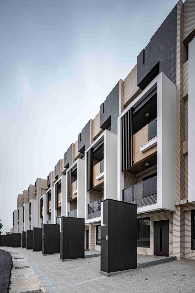 Blissful Retreat is a residential project in Taoyuan City, featuring 11 four-story standalone townhouses that blend modern design with natural harmony. The facade uses natural materials, neutral tones, and vertical louvers for privacy, shading, and ventilation, creating a rhythmic, timeless aesthetic. Inside, large windows, terraces, and private courtyards maximize natural light and outdoor connection. With durable materials, energy-efficient layouts, and eco-friendly principles, the design fosters comfort, sustainability, and an elevated living experience in balance with its surroundings.