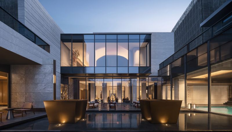 Featuring dual sunken courtyards and minimalist glass structures, it creates seamless indoor-outdoor experiences and "boundaryless views." Thoughtful material selection balances elegance and durability.