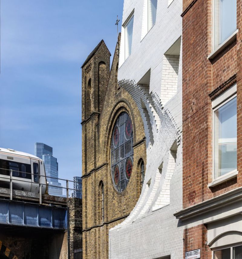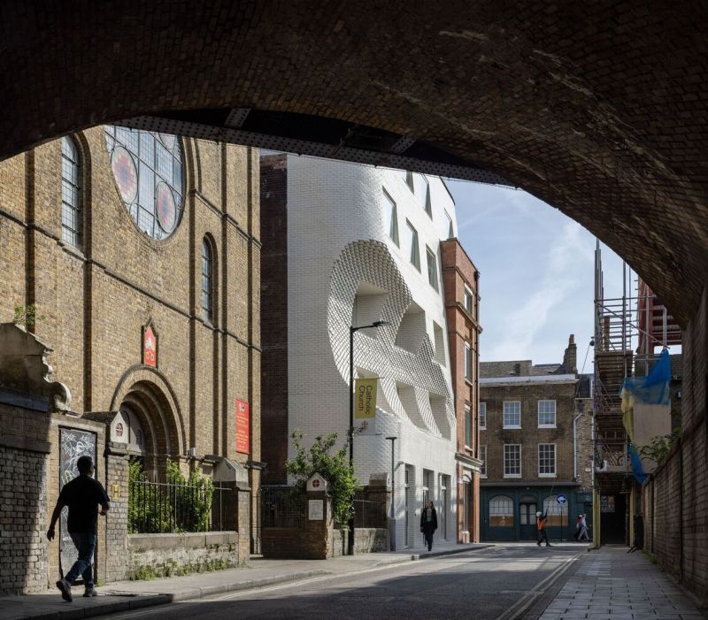Leading UK architecture firm, Corstorphine & Wright, has announced the completion of 'The Scoop', a unique concave office building in Southwark, London. The innovative design reuses an existing building and integrates a conical cut-out façade in white glazed bricks, creating a playful and novel response to the site's context and neighbouring church.