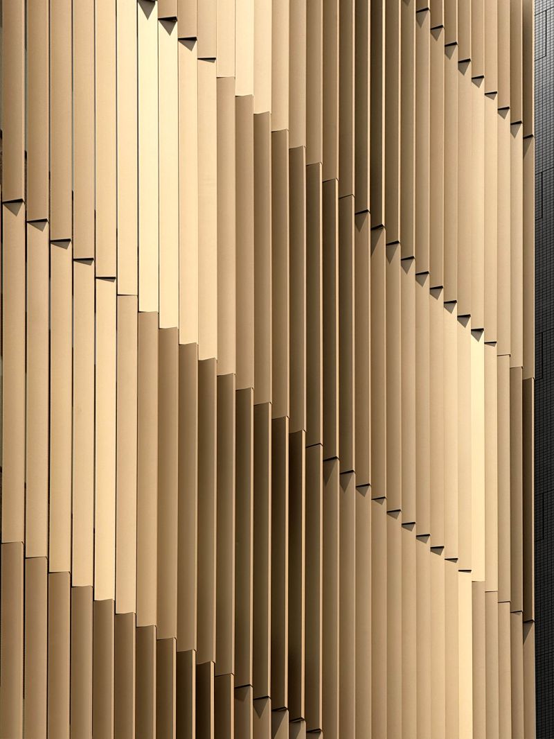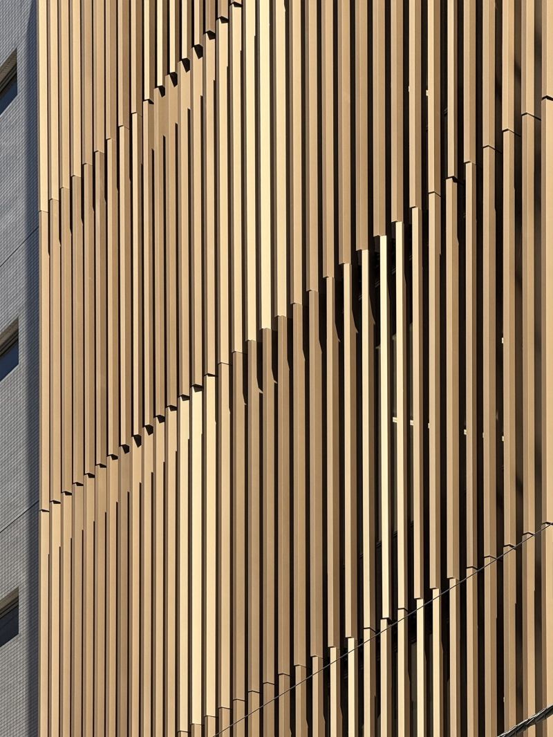 Founded over 400 years ago, Higeta Shoyu pioneered the addition of wheat to soy sauce brewing in 1697, creating the origin of dark soy sauce and establishing a unique identity that reshaped Japanese food culture. The new headquarters conveys this heritage architecturally: golden louvers evoke vast wheat fields shimmering in the wind, like a noren curtain swaying. A central light court in “Higeta Yellow” fills interiors with symbolic brightness, while signage reinterpreting wooden barrels turns function into tactile forms, weaving history, material, and innovation into the company’s future.
