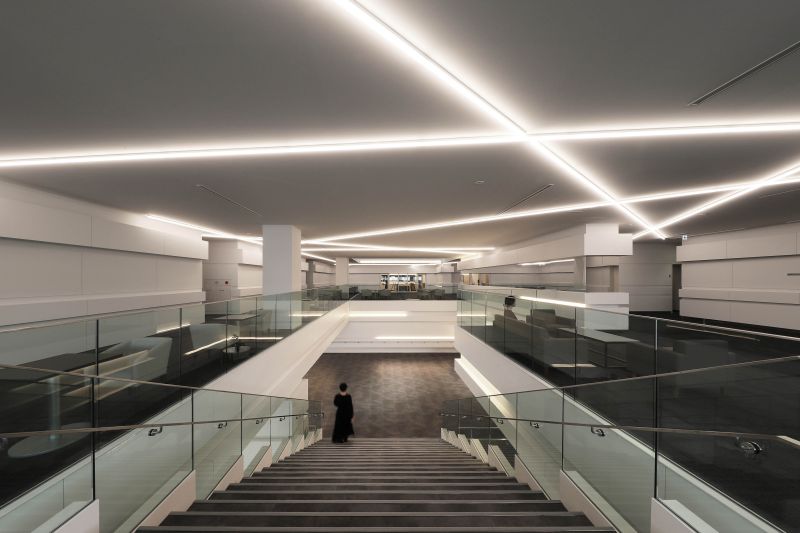 The lighting plan reflects the angles of the crystal cut, incorporating this distinctive element into the spatial composition.