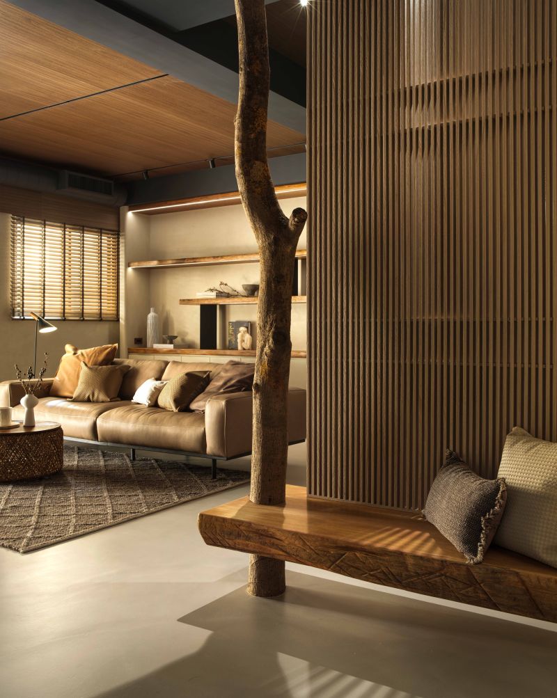 Luminous Serenity was created as a sanctuary for the client’s daughter beginning her medical studies in Kaohsiung. Guided by wabi-sabi, the design strips away excess and embraces natural textures to shape a calm, resilient retreat. Minimal demolition opened the kitchen into a seamless flow for gatherings, while a focused study with double-sided shelves supports learning. Driftwood, eco-friendly plaster, and PANDOMO flooring express sustainability, as shifting daylight through timber louvers turns returning home into a quiet ritual of release.