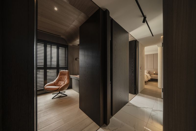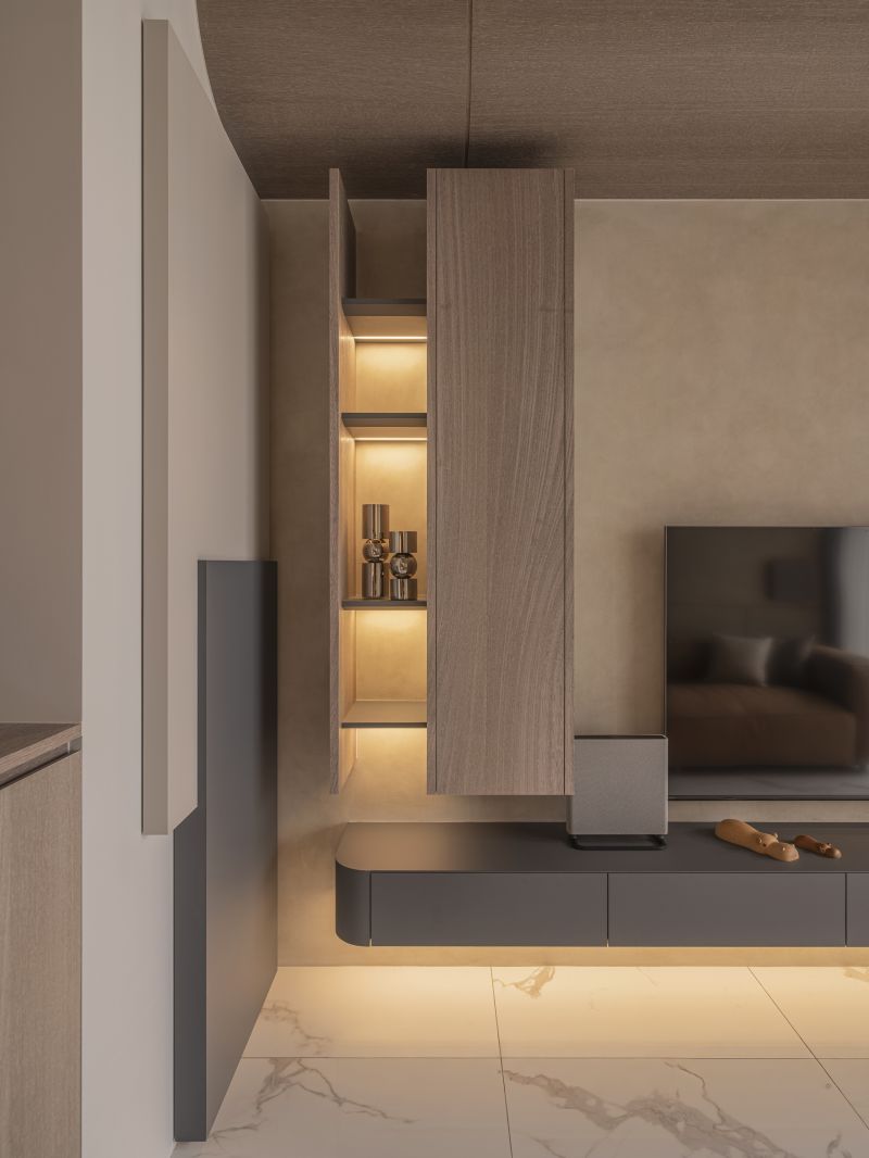 Layered Dimensions of Time reimagines contemporary living through fluid transitions of space, light, and material. Every detail such as curved lines, shifting reflections, and tailored proportions echoes the resident’s rhythm and emotion. A rippled glass sliding door balances openness and privacy, while a revolving wooden bookshelf conceals a tranquil study. Layered ceilings, tactile finishes, and ambient light form poetic continuity. Transcending scale constraints, the design merges British refinement and Wabi-Sabi serenity into a timeless, multidimensional home of grace and depth.