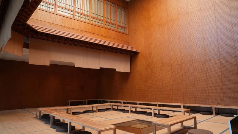 This space is fundamentally designed to facilitate meditative practice, with all elements sourced from nature. An innovative bamboo acoustic system and lime-mortar microclimate regulation create a tranquil, comfortable, and stable environment without electrical dependency. These features immerse practitioners in nature's rhythm, demonstrating a perfect harmony between sustainable design rooted in material essence and Eastern philosophical principles.