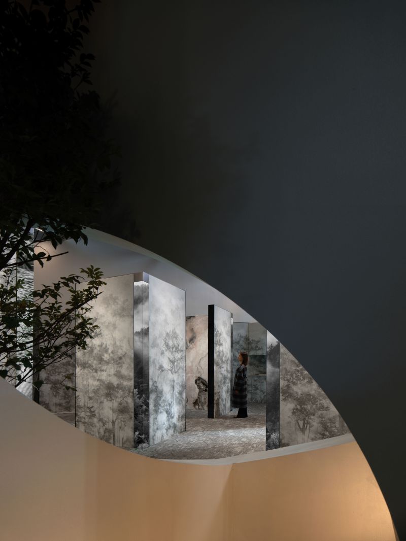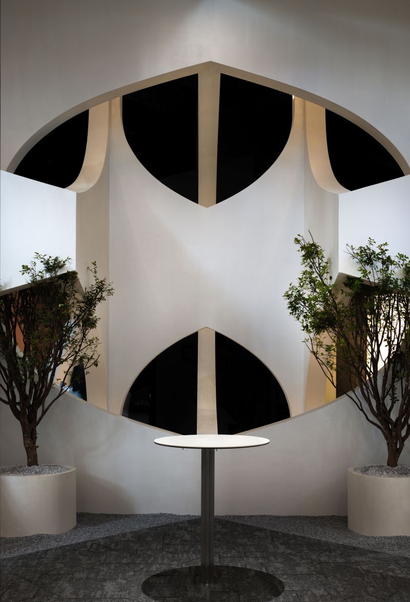 This is the brand space construction in the exhibition. Through brand analysis, "enjoying nature in luxury" was extracted as the new brand focus point. The design of the pavilion was inspired by the "Tree of Life" in the corporate headquarters, and the pavilion's façade was formed by stacking "branch" modules to form an upward-growing tree. The "Mori" series was chosen for the product display to strengthen the sense of natural atmosphere and make the pavilion a three-dimensional "forest".