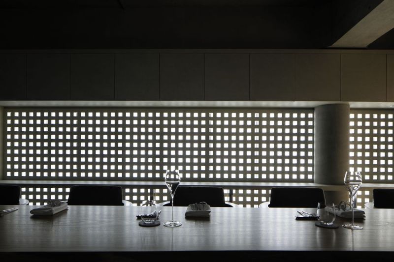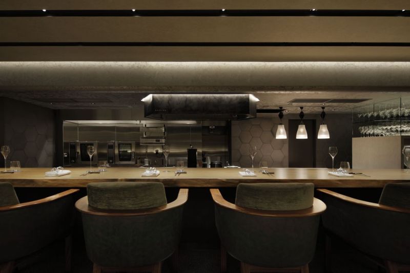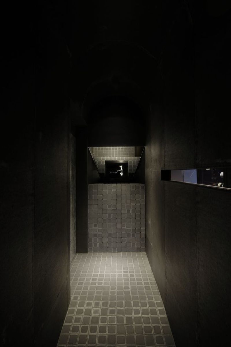 Mashiro, located near Kyoto's historic Chohoji temple, is a restaurant designed around the concept of "pure white." The entrance pathway features an interplay of light and shadow, with an arched corridor adorned with washi paper representing the six senses and a traditional tsukubai washbasin. The interior showcases a 10-meter solid wood counter and custom hexagonal tiles inspired by Rokkaku-do temple. Local craftsmanship is evident through Kurotani washi paper and Italian stucco finishes, while the contrast of black and white spaces creates an environment for mental renewal.