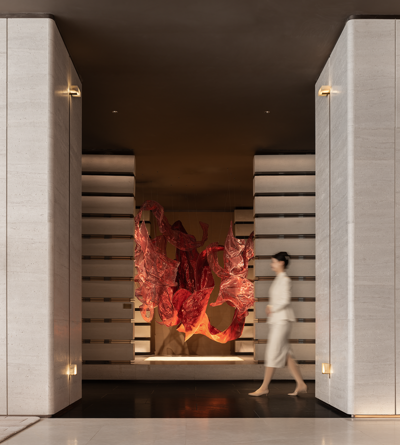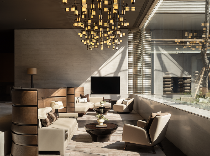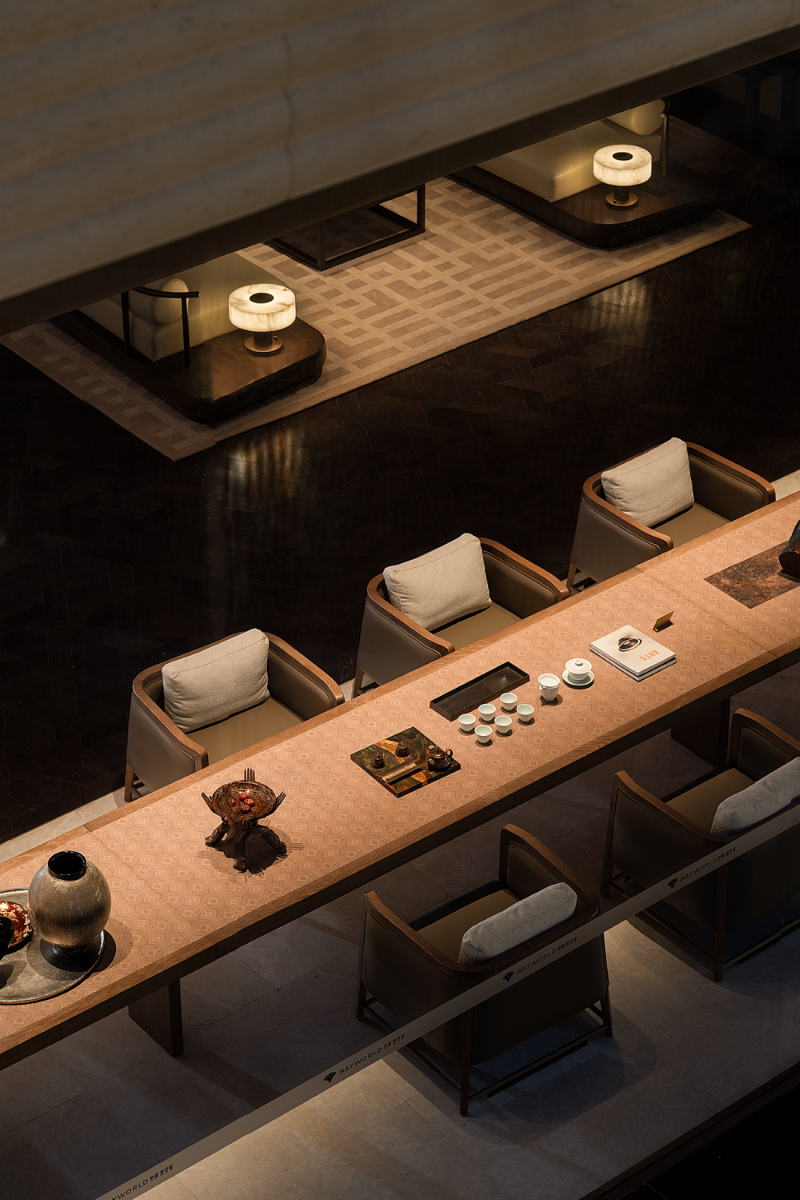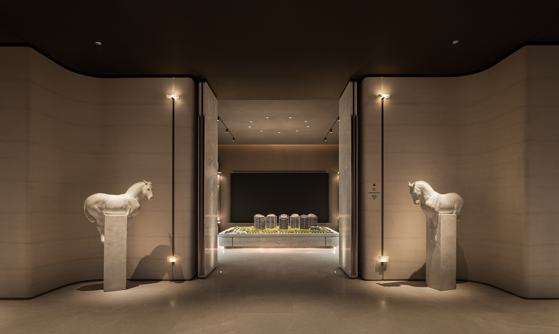 Xian Xi club draws inspiration from modern Oriental aesthetics, integrating the city’s historical richness into spatial design. It is a high-end social space with comfort and all-in-one functions. It creates community warmth with areas like sunken courtyard of nature, urban business space, wine tasting lounge, spa, boardgame space and indoor golf. It blends in culture and art. It meets both public and private needs. When clients are living here, they feel like in a five-star grand establishment. This transforms a temporary sales office into a timeless space of prestige.
