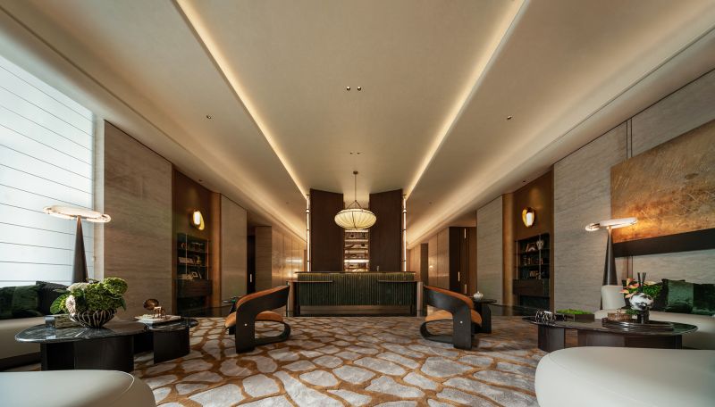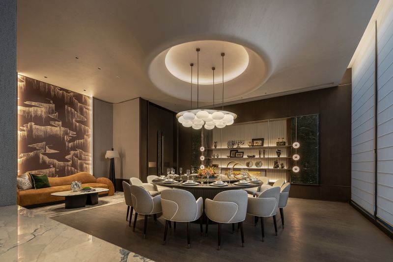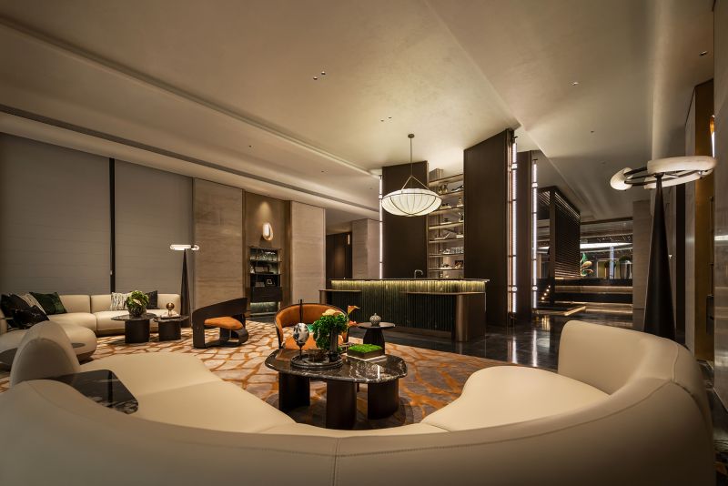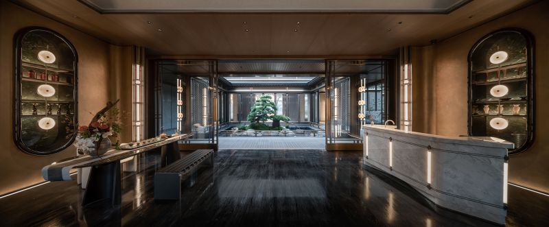 Fangyuan ·Hill Club Agreeable Reading —dubbed “Song Rhyme Elegance”—unfolds across 10,000 m² of two-storey, ultra-private salons. The circular-heaven, square-earth concept marries ritual with modernity, hosting art salons, bespoke banquets and cultural gatherings. Design channels Huangyan heritage: bamboo carving grain, rustic papermaking, totemic dance motifs and weathered plaster, re-imagined through contemporary craft. Prized trees cloak 40-45 % of the grounds, irrigated smartly, filtering PM2.5 and refining micro-climate.