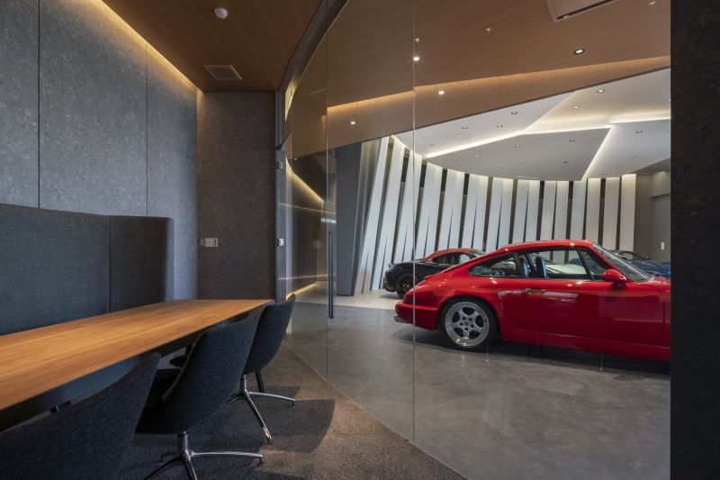 it is a space that has been thoroughly designed to make each of the cars on display look attractive.