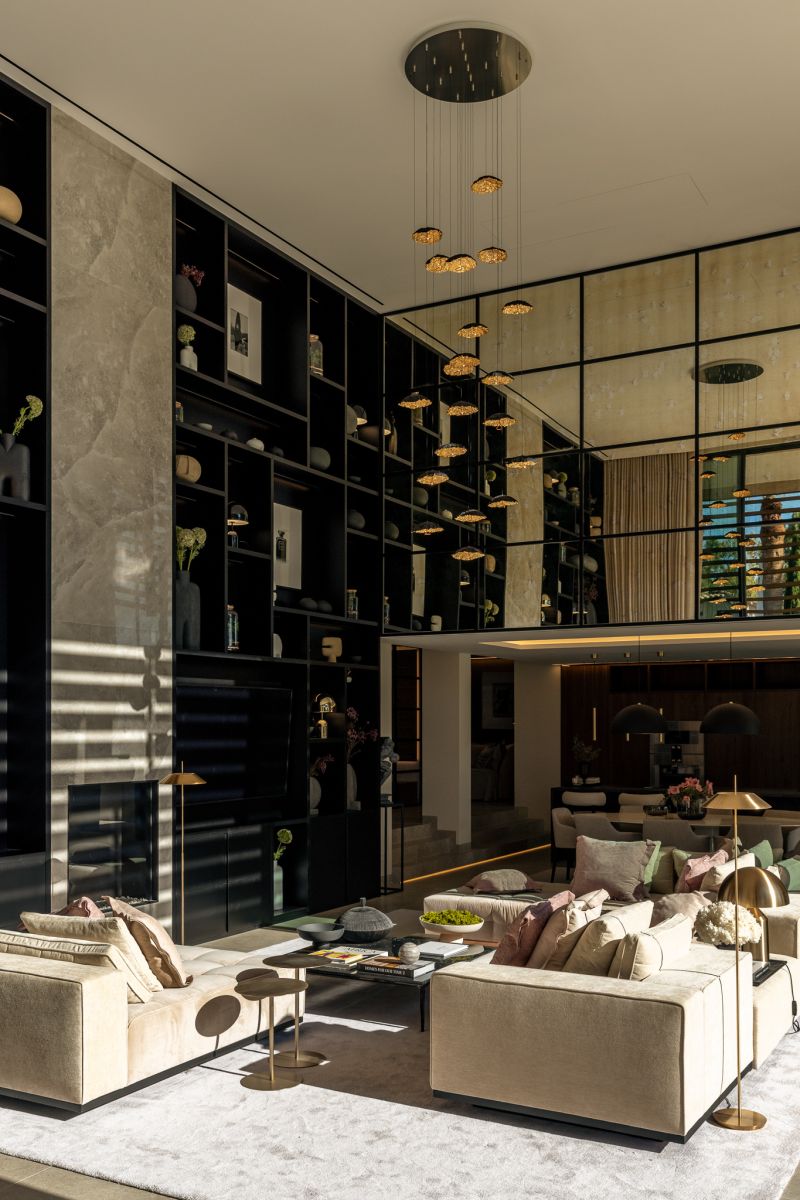 The villa features six en-suite bedrooms, complemented by elegant living, dining, and TV rooms, a private cinema, a spa, and extensive outdoor areas including a 25-meter swimming pool surrounded by landscaped gardens.