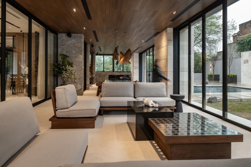 Casa Magnolia in Monterrey is a bespoke residence for a family of five, blending timeless design with a relaxed, sociable lifestyle. Curved lines unify over 40 custom spaces, while earthy tones and materials like wood and marble connect the home to its riverside setting. A triple-height atrium anchors circulation. Social areas open to nature, including a terrace with a climate-controlled outdoor kitchen. The project balances comfort, function, and emotional depth through thoughtful design and biophilic principles.