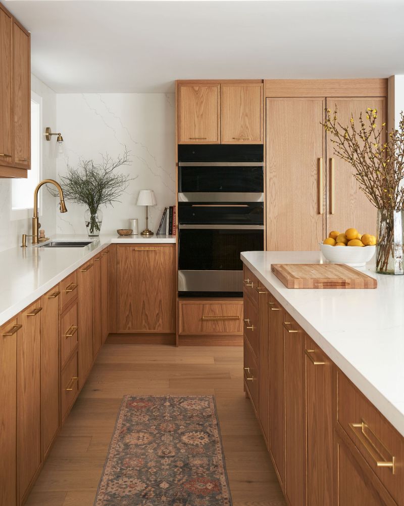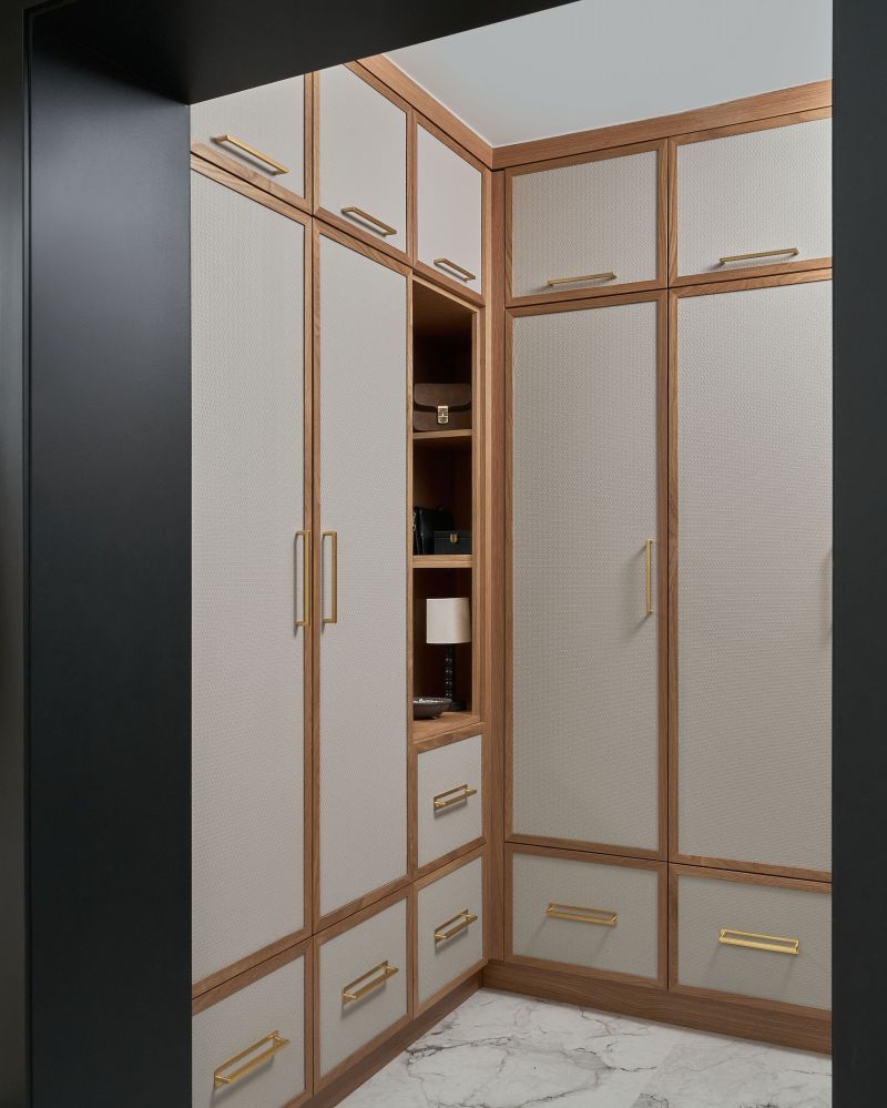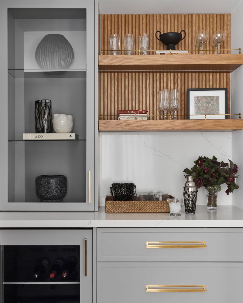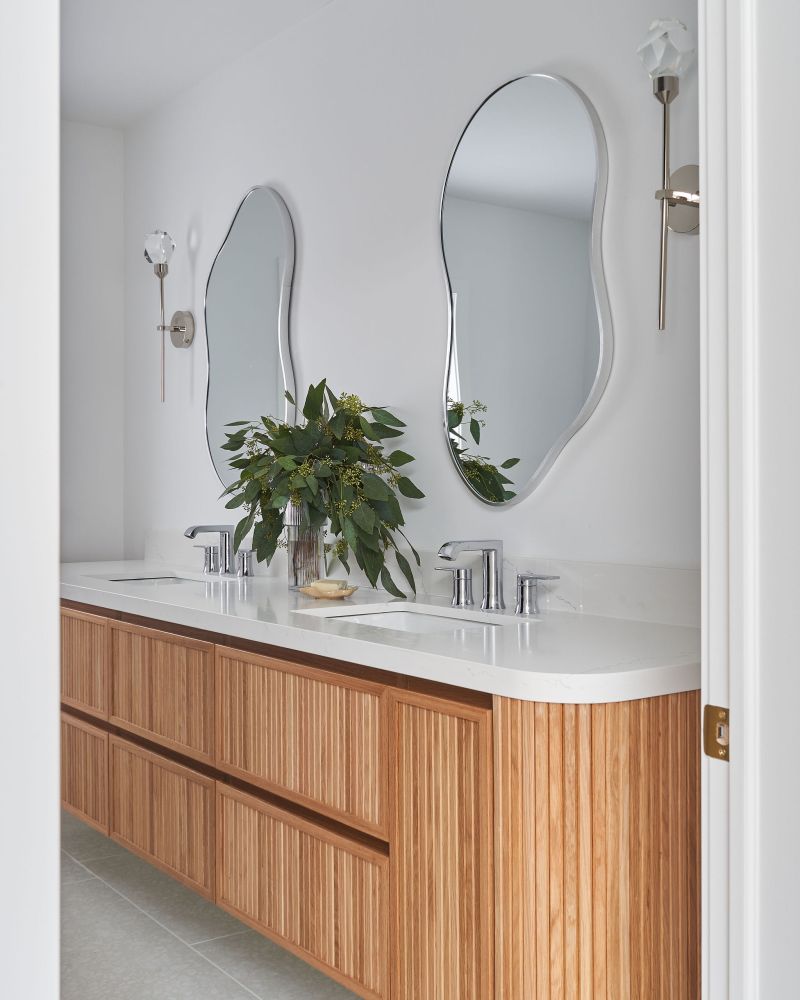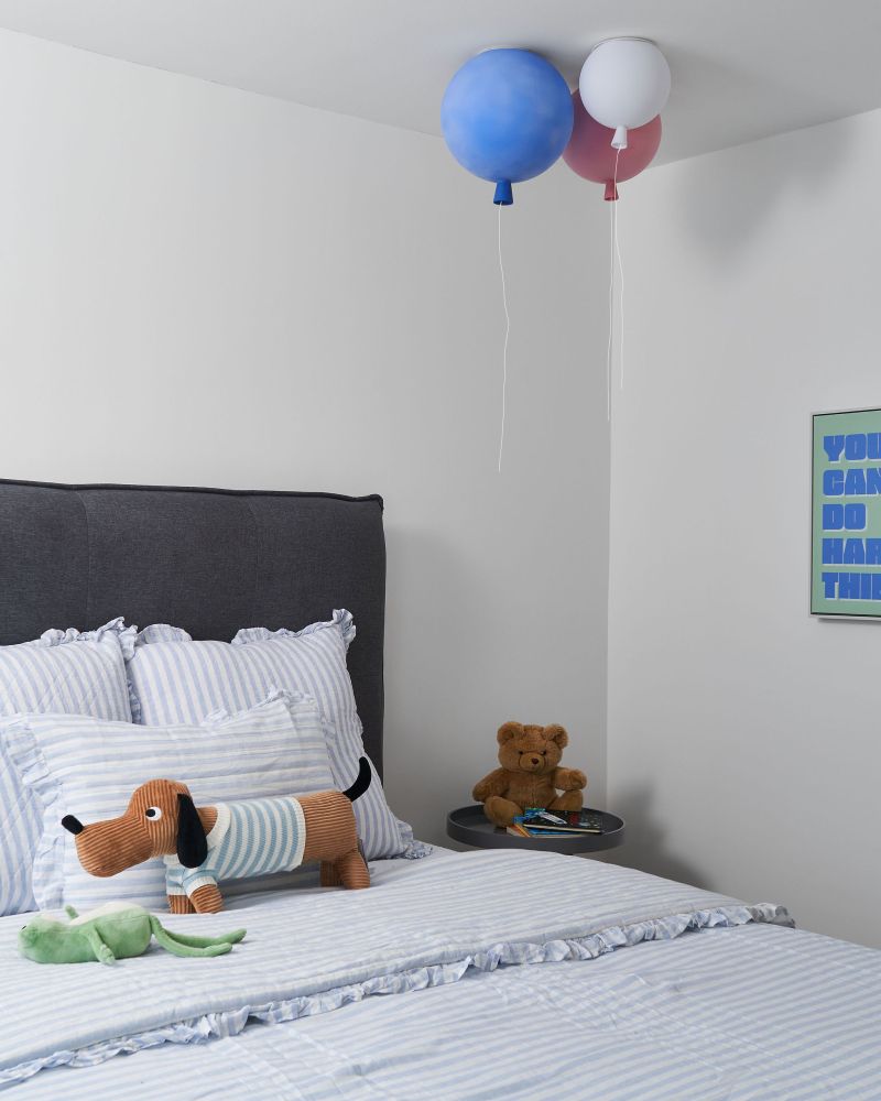 Refined yet approachable, the Dunlace Residence reimagines suburban family living through soft luxury and grounded warmth. This Toronto home balances modern sensibility with timeless comfort, featuring natural oak, warm brass, and layered textures. A fluted island and soft-veined quartz define the heart of the home, while metallic wallpaper adds depth and shimmer under shifting light. In the child’s room, whimsical balloon lights and soft stripes introduce playful charm, completing a serene, tactile, and quietly sophisticated interior.
