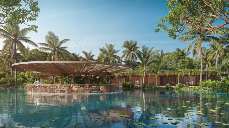Set on 130 ha along Eleuthera’s coast, the project redefines luxury hospitality through environmental and cultural integration. It features 110 guest rooms, 97 branded residences, 54 lots, and amenities amid jungle, beach, and golf course. A 30 ha solar farm powers the site, while interconnected ponds collect and purify rainwater, supporting local biodiversity. Using coral stone, timber, and lime plaster, the architecture fuses Bahamian and Taíno traditions with contemporary design to create an immersive, place-rooted experience.