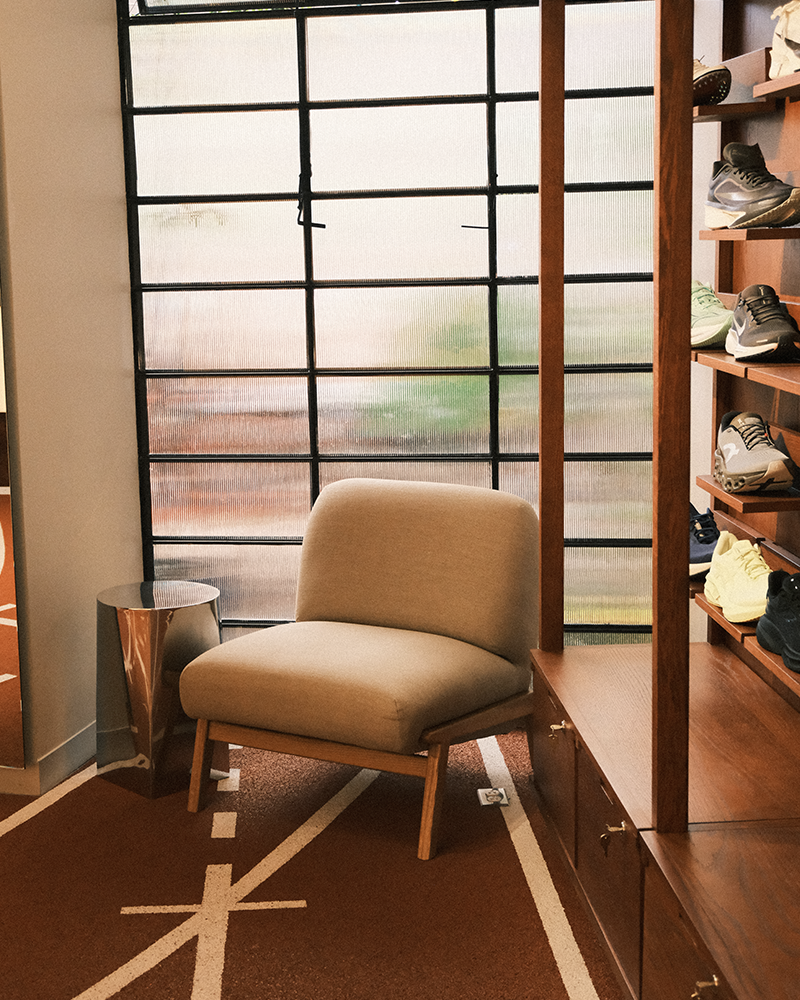 It connects two atmospheres: the runner’s store, warm and familiar through wood and stainless steel, and Disco Café, a dynamic venue shifting from morning coffees for runners to evening drinks with music. Moveable furniture, adaptive lighting, and handcrafted details evoke a timeless sense of belonging.