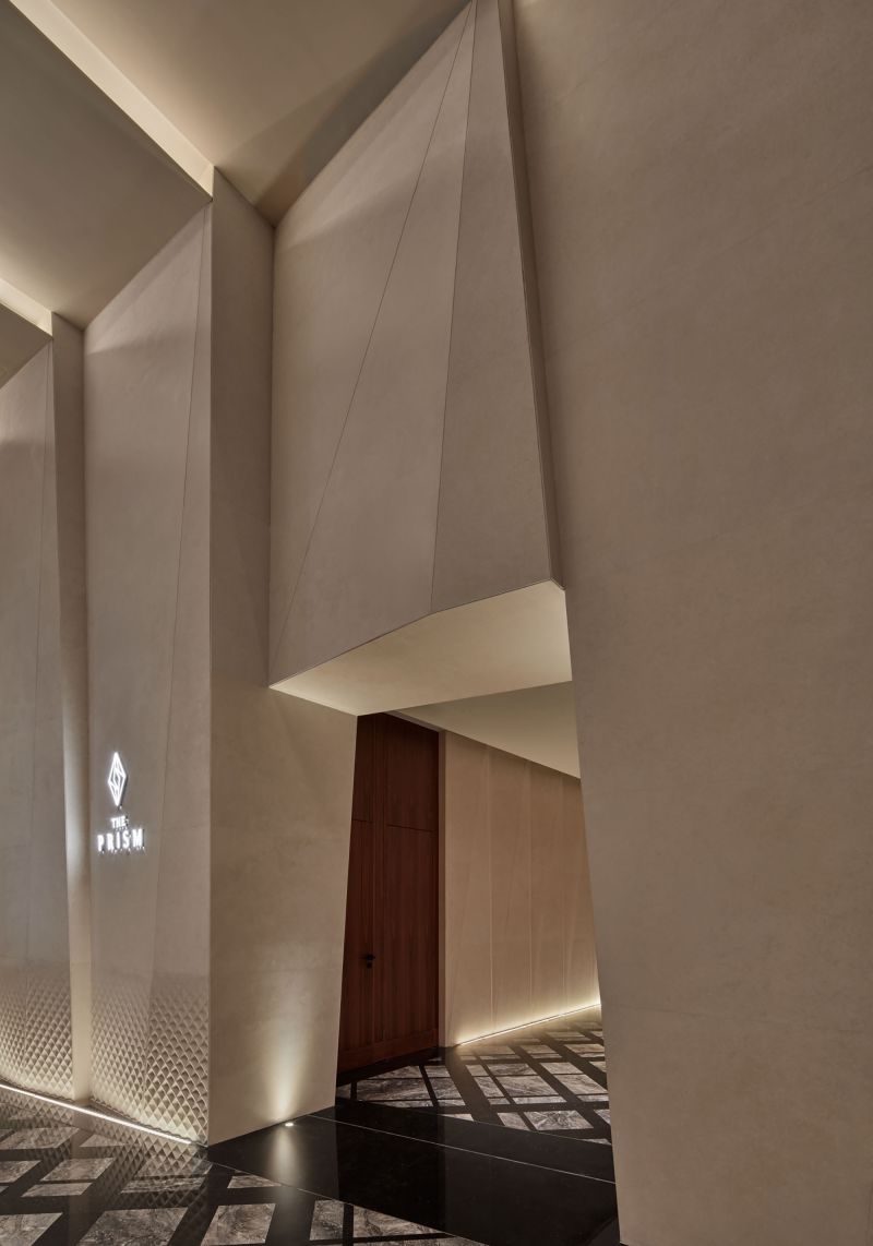 THE PRISM SHANGHAI explores spatial experience, light and shadow, and local context, transcending traditional boundaries between architecture, interior, and landscape through the "diamond cutting" concept. The design creates an immersive environment blending poetic modernity and artistic tension, embodying Shanghai’s elegance and futurism.