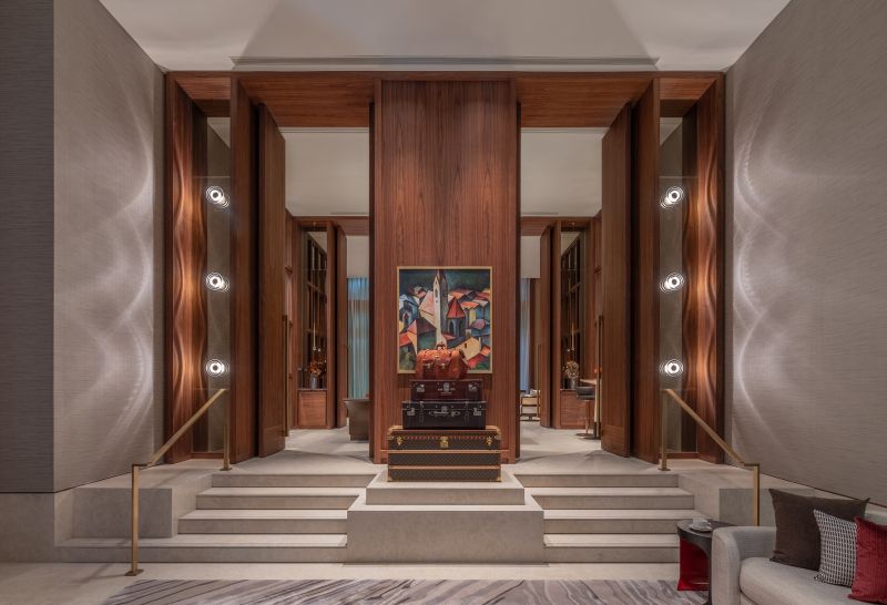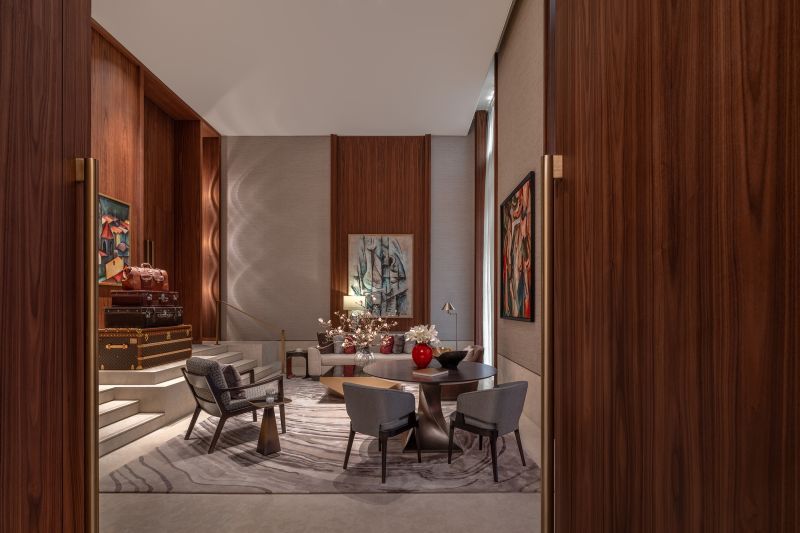 In designing TianTong 198's residential lobby, we aimed to create a warmer atmosphere distinct from the cold, impersonal feel of office buildings. Through meticulous attention to spatial proportions and material selection, we achieved our design vision. By balancing hard and soft materials, warm and cool elements, and thoughtfully partitioning the space while preserving its openness and grandeur, we transformed the lobby into what feels like the complex's communal 'living room' of the entire project.
