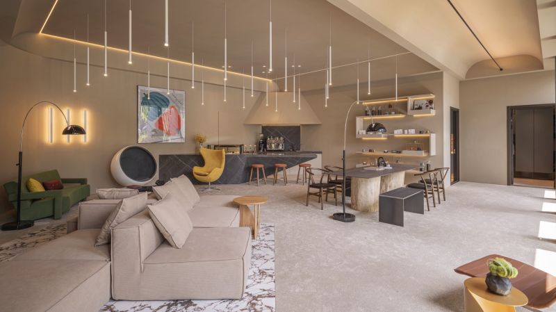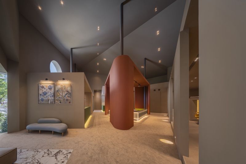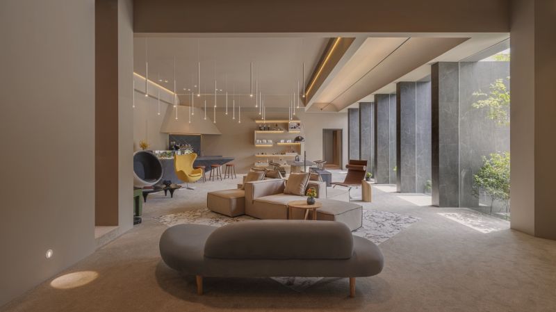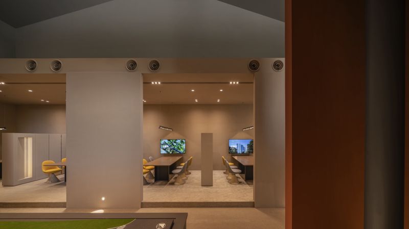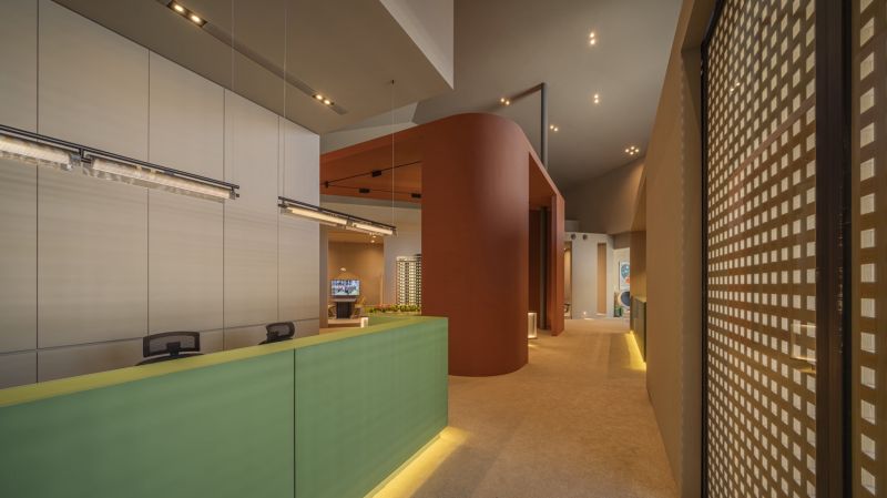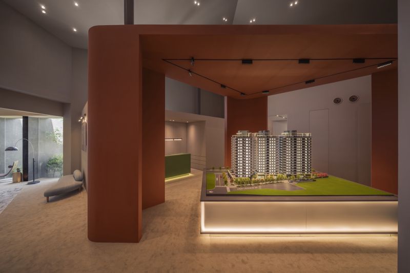Inspired by the site’s barren earth, Angled Oasis redefines the showroom as a living landscape rather than a sales venue. Three interlinked volumes—a trapezoid for reception, a central café hub, and an extended model home—compose a flowing spatial journey. Through angled geometry, layered materials, and natural greenery, the design transforms viewing into interaction, merging brand narrative, everyday life, and a sense of urban retreat.