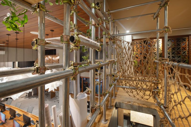 Rising from the post-eruption landscape of Bacolor, Pampanga, Philippines, The Capital Commons embodies a dialogue between heritage and innovation. Conceived as a contemporary “third place,” it blurs the boundaries between office, gallery, and community hub. Showcasing the works of local artisans—low-cost yet bespoke—its use of organic wood, volcanic stone, visual screens, indigenous lighting, and handcrafted furniture tells a vivid story of resilience and renewal, intertwining architectural space and local community in a setting that preserves and celebrates identity.