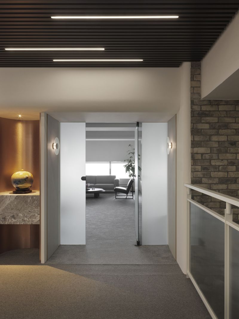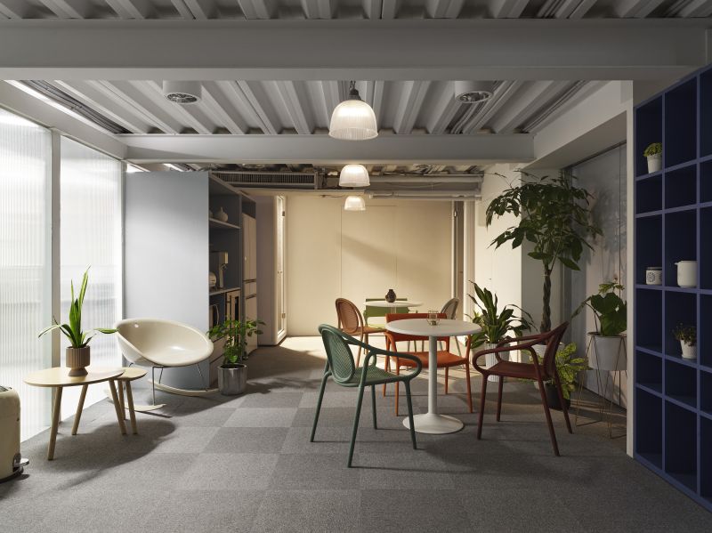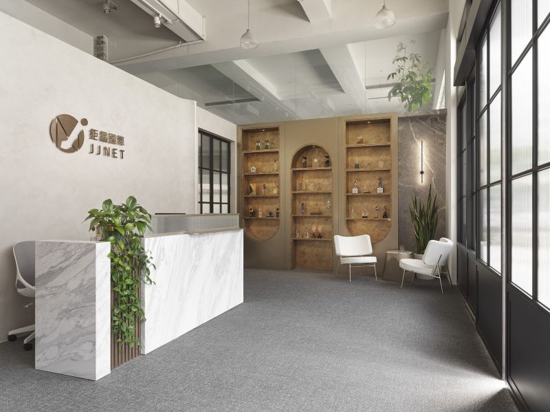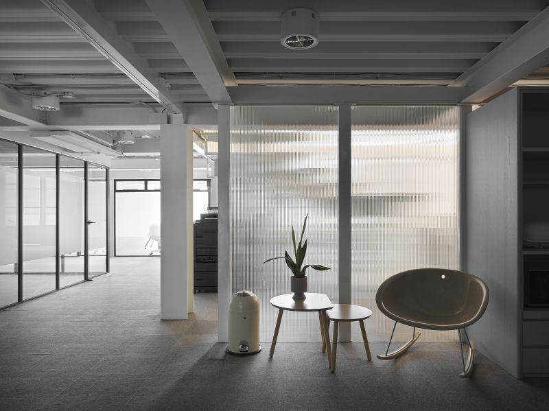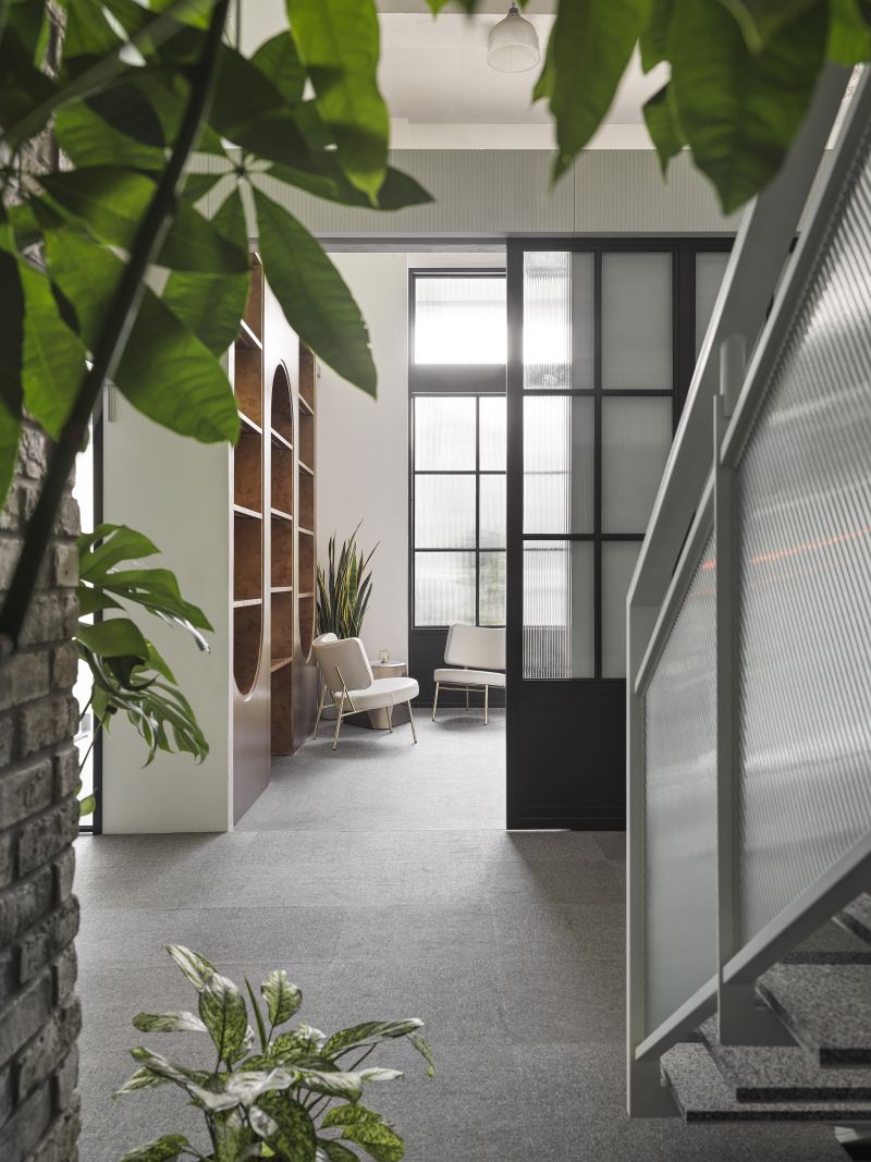 The project integrates natural and technological elements, elegantly bringing cultural charm to the technology industry. Furniture applied with dynamic color palettes such as green, red, and blue embellish the rest area and increase an active touch for the understated façade. The executive office collaborates the integral tones of grayish white and light wooden colors, settling graceful appeal.