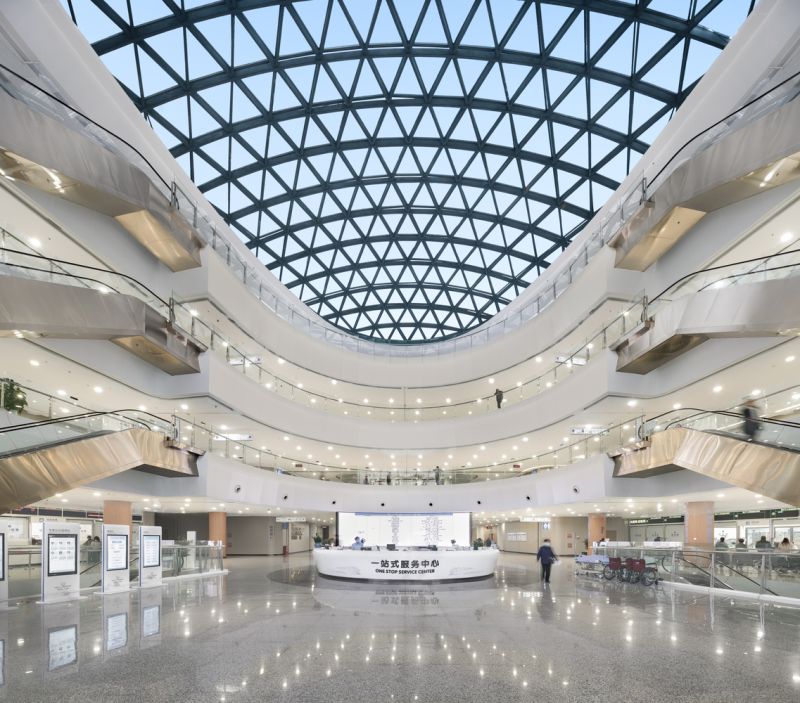 Hangzhou First People's Hospital Tonglu Branch is situated in the High-speed Rail Future City of Tonglu County. It is adjacent to the Tonglu Station of the Hangzhou-Huangshan High-Speed Railway, with the painting "Dwelling in the Fuchun Mountains" in Tonglu County as the backdrop. The hospital, featuring an all-steel structure, is designed as a comprehensive Grade-A tertiary hospital certified as a Three-star Green Building. The project covers an area of 70,000 m2.