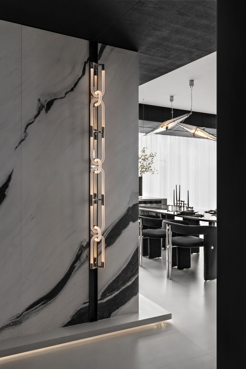 All materials engage in an ontological dialogue here: the silence of stone and the restlessness of light, the engulfing darkness and the explosive power of white, ultimately solidifying into a surreal stillness of a homecoming ritual: in the moment the door swings open, you become the curator of your own spiritual gallery.