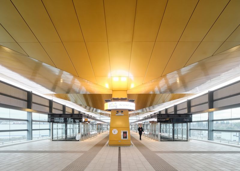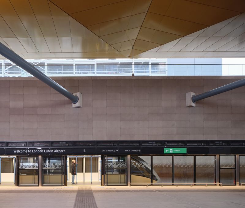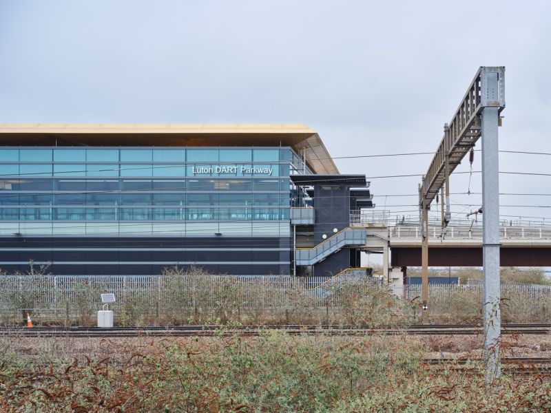 The Luton DART (Direct Air-Rail Transit) is a pioneering fully-automated people mover that transports travelers from Luton Airport Parkway railway station to the terminal of London Luton Airport in under four minutes. The project was designed and delivered by a holistic multi-disciplinary Arup team, including Architects, Engineers, Planners and Specialists. Arup's Architecture team designed a common language of bold, sculptural parasol structures that support the roof and allow light and air to enter the stations, whilst protecting passengers from the weather.