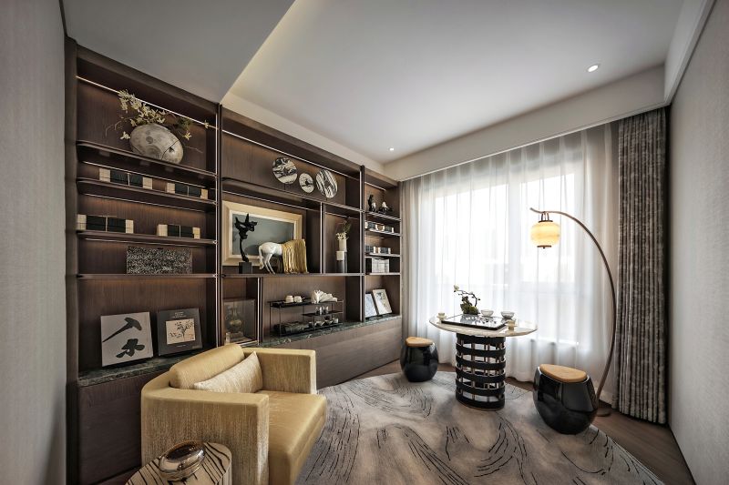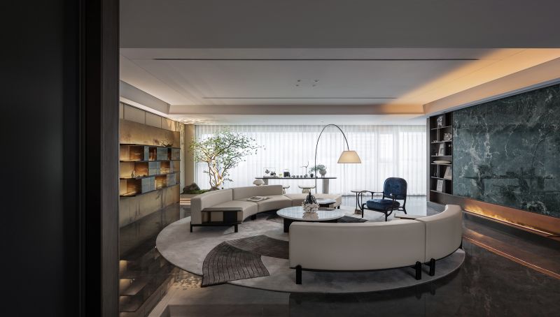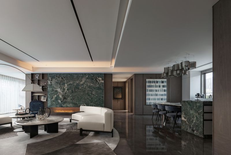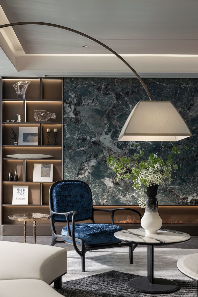 The project creates a poetic living space with a rare 18.6m south-facing width and 235 exclusive units. Inspired by Jinan’s landscapes, misty Magehua Mountain enters the home through screen-like compositions, blending culture with quiet beauty. Dark green stone, sapphire blue chairs, and soft white tones harmonize modernity and tradition. Dual kitchens balance Chinese and Western lifestyles, while art, marble, and bronze enrich cultural depth. Spacious master suites with walk-in closets and private baths embody elegance, privacy, and comfort, infusing daily life with warmth and imagination.